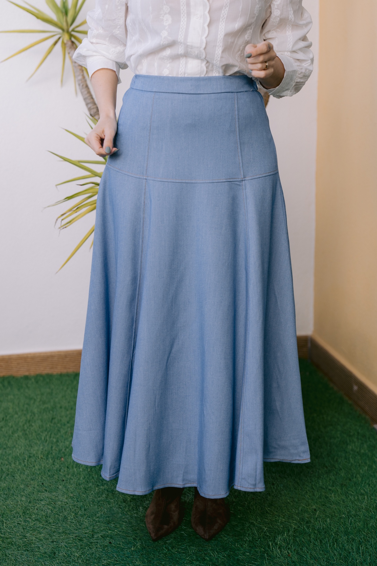 Home Nova Coleção Saia ganga Saia ganga Tamanho S M L 39,90 € Desconto de %. Comprar Contactar Adicionar à wishlist Ganga fluida.Com elástico atrás na zona da cintura. Partilhar